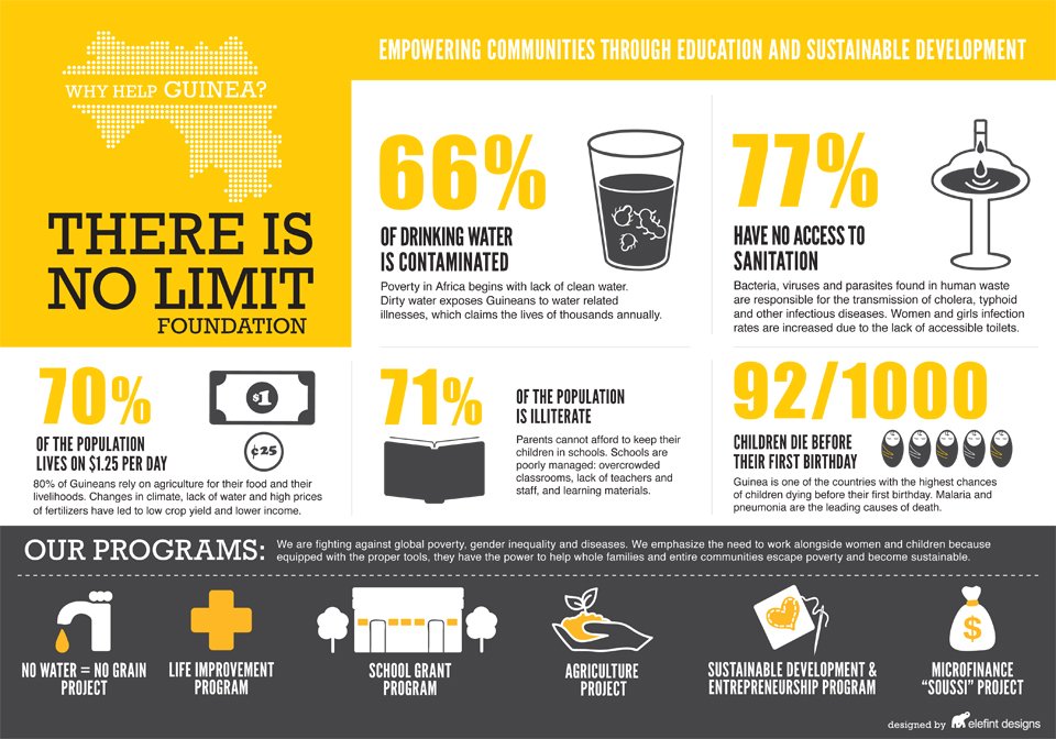“Guinea is a country most people have never heard of,” says Aissata Camara, the nonprofit’s vice president and co-founder. “The infographic will help us in our quest to raise awareness about the issues Guineans face daily.”